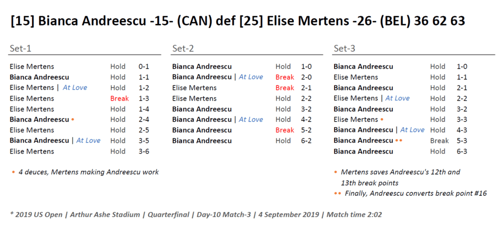 [15] Bianca Andreescu -15- (CAN) def [25] Elise Mertens -25- (BEL)