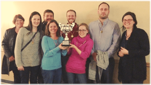 Teams brought their own snacks, designed their own costumes and decorated their tables in the Olympic theme before we busted into the evening’s trivia hosted by Andrew Buchbinder, the broadcast voice of the Springfield Cardinals. During breaks, I had a chance to have fun with the teams while hosting an “Evolution of Hip Hop” dance competition and random fundraising games, including the new party favorite: “Pin the Visine on Bob Costas.”