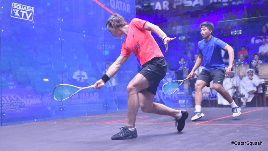 Competing in his sixth World Championship, New Zealand’s Paul Coll wasted no time eliminating one of two Qatari Wild Cards in this year’s draw. The World #5 put in a light workout, advancing to Round-2 for the fourth time.