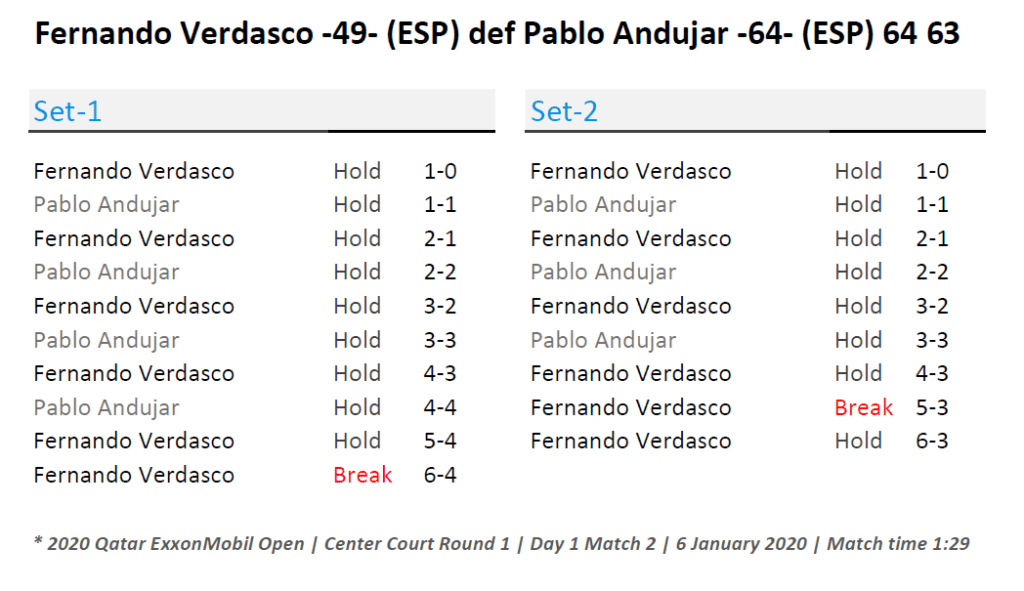 ► 2020. Verdasco – Score: 64 63 – Doha (R1)