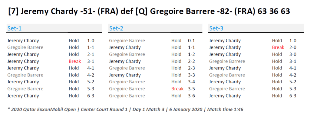 ▲ R1 — def [Q] Gregoire Barrere -83- (FRA) | Score: 63 36 63