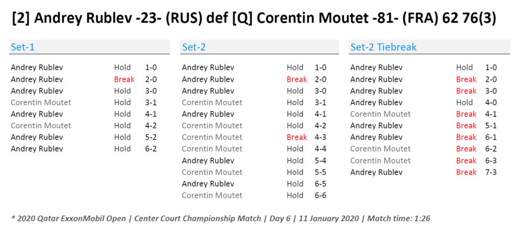 Meanwhile Corentin Moutet leaves Doha feeling the way Andrey felt in 2018. But the young Frenchman needs to take stock of all he accomplished this week. As a qualifier, he started the New Year with six wins, reaching both his first Tour-level Semifinal and Final.