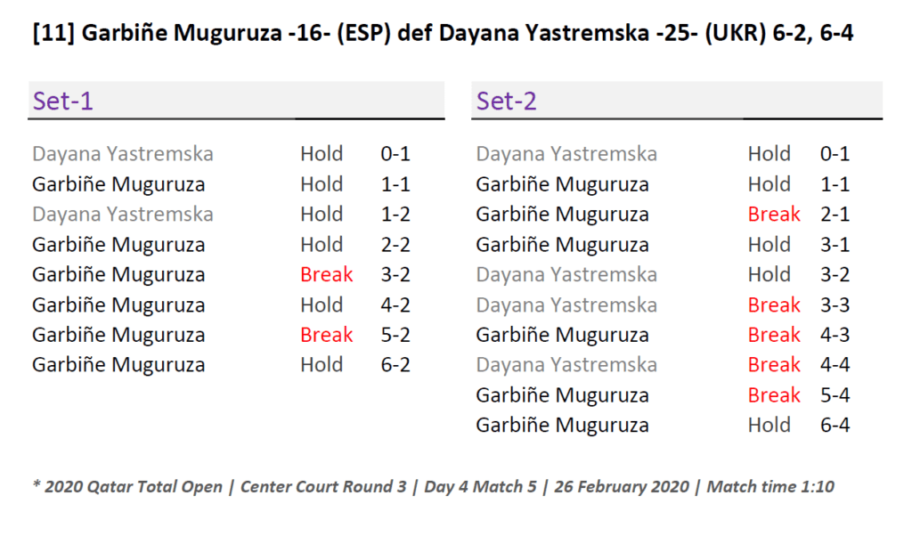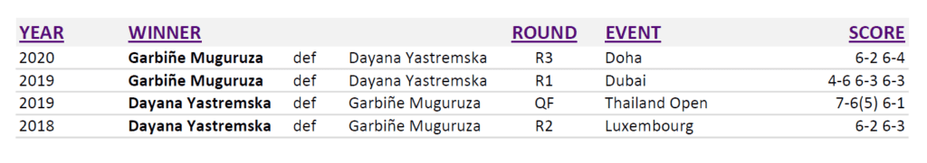 Muguruza knows how to win in Qatar. She’s conscious of Doha’s varied conditions. In 2018, she came back from a set-down to defeat Caroline Garcia in the Quarterfinals, then benefited from a walkover in the Semi’s (Simona Halep toe-injury). Despite her own upper-thigh problems, in the championship match Garbiñe won the first set, before falling to Petra Kvitova. It was Muguruza’s third Premier-5 Final — and before last month’s tremendous run in Melbourne, remained her best result for nearly two-years.
