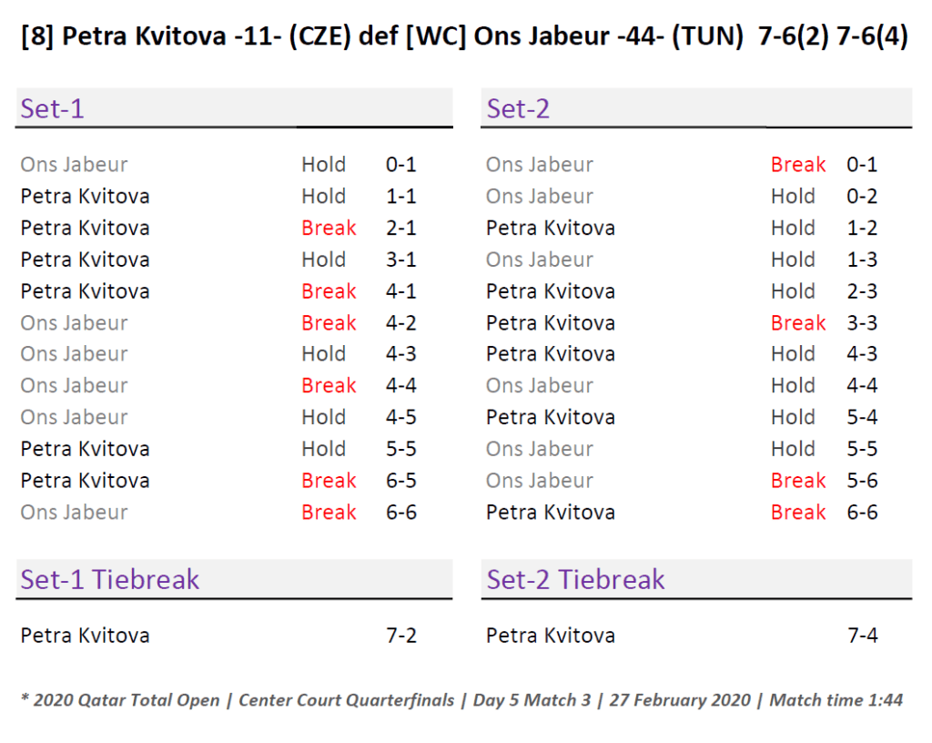- QF — W | [WC] Ons Jabeur -44- (TUN) | Score: 7-6(2), 7-6(4)