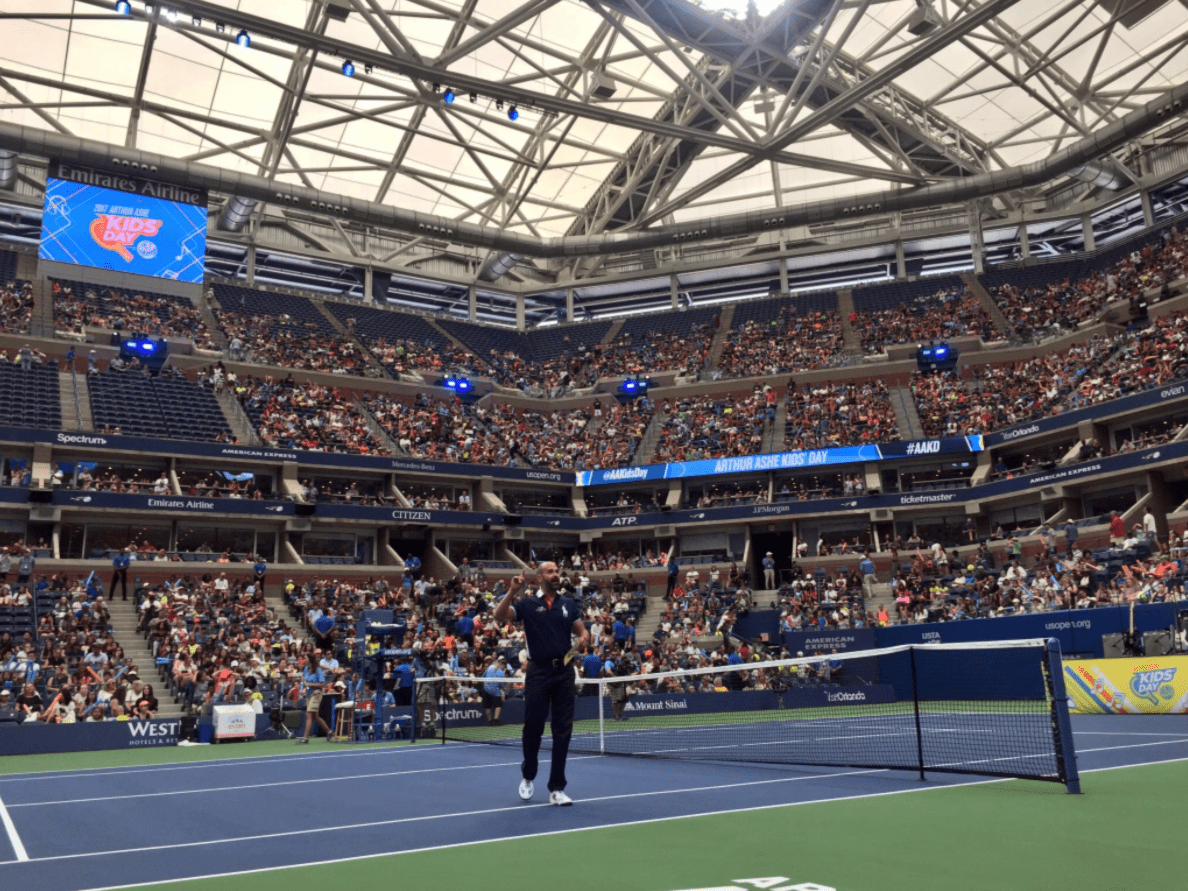 Whether he’s describing how Armstrong Stadium is full to capacity, awarding a trip to Dubai, cutting-up with John McEnroe, hosting a trophy ceremony, or detailing Serena’s amazing career — it is Andy’s voice in the fan’s ear. Narrating. Informing.